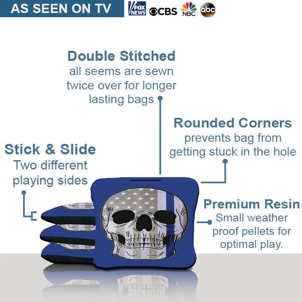 Blue Line Skull Cornhole Bags